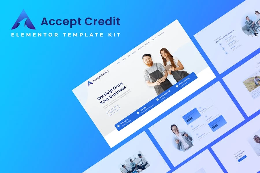 Especificaciones: Aceptar crédito: kit de plantillas Elementor de servicios financieros