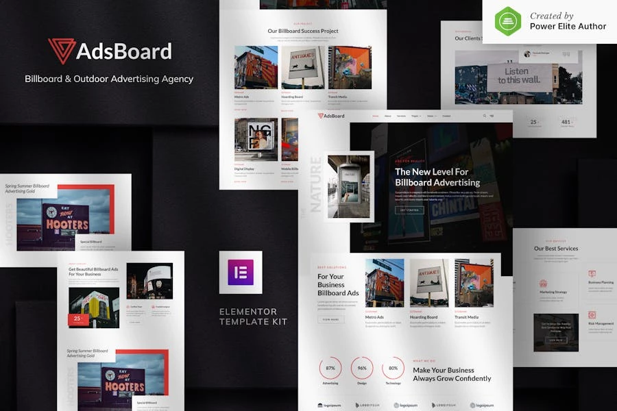 AdsBoard — Kit de plantillas Elementor para vallas publicitarias y agencias de publicidad exterior