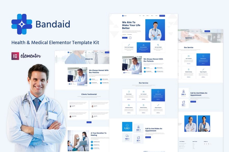 Bandaid – Kit de plantillas Elementor para salud y medicina
