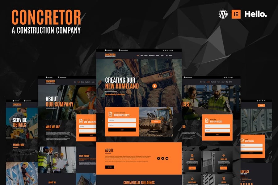 Concretor is a modern dark style Elementor Template Kit, built specifically for Real Estate and Construction. It’s easy to use the pre-made template pages to quickly build your website. Contains 30 different templates and Global Kit Style.