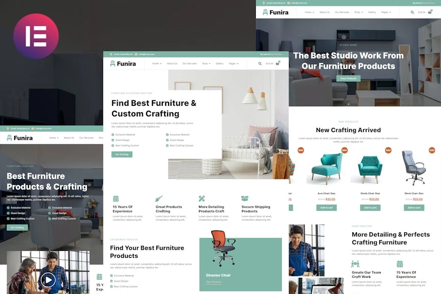 Template Kit Elementor de Funira – Furniture Shop & Custom Craft es una Colleción de diseños para el Plugin de WordPress del creador de páginas Elementor, diseñado para usarse con la versión Elementor Pro para un diseño limpio. Funciona con la mayoría de los temas y está optimizado para su uso con el tema gratuito Hello Elementor