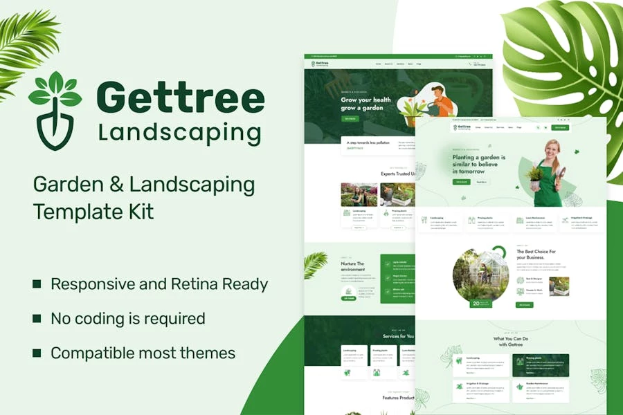 Especificaciones: Gettree — Template Kit Elementor para jardines y paisajismo