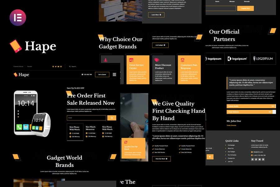 Hape – Kit de plantillas Elementor Pro para Gadget Showcase