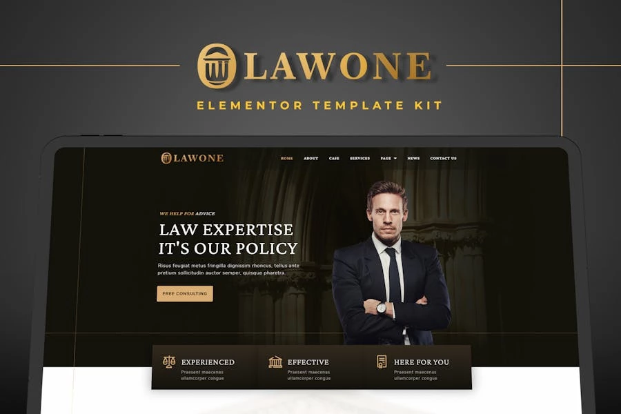 Especificaciones: Lawone – Template Kit Elementor para firmas legales y de abogados