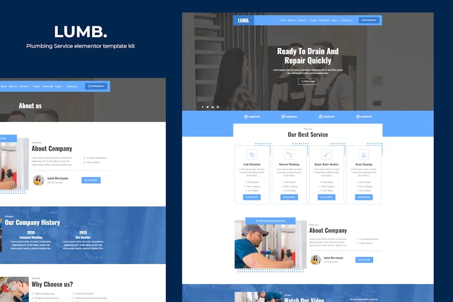 Lumb – Kit de plantillas Elementor para servicios de plomería
