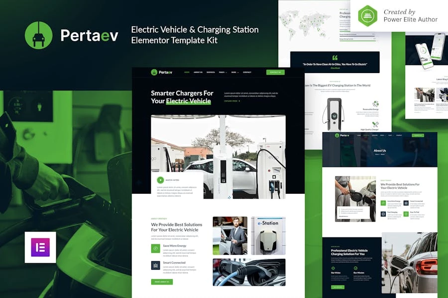 Pertaev es un kit de plantillas Elementor moderno y limpio perfecto para Electric Estación de carga para automóviles y vehículos eléctricos, vehículos eléctricos, bicicletas eléctricas y cualquier cosa relacionada con vehículos eléctricos negocio. Esta plantilla tiene un diseño profesional con un 100% de respuesta diseño, está listo para la retina y es muy fácil de personalizar porque usa Elementor ¡así que no necesitas una sola línea de codificación!