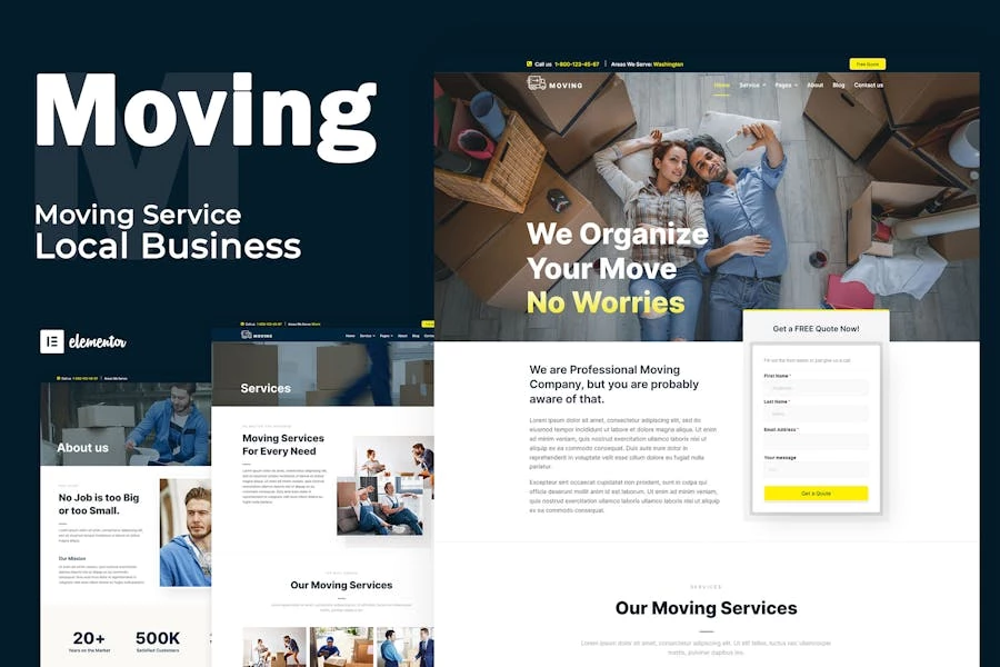 Servicio de mudanzas: Kit de plantillas Elementor para empresas locales