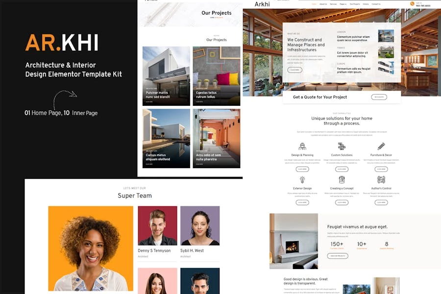 Arkhi es un Template Kits Elementor creado para diseño de interiores, diseño comercial, arquitectura, construcción, estudios o cualquier sitio web empresarial… Después de importar la demostración, solo necesita cambiar parte de la información de la plantilla para tener un sitio web completo. Está muy bien optimizado para SEO. Todas las imágenes con derechos de autor que puedes usar para tu sitio web. Es totalmente responsivo, está preparado para la retina y es fácil de personalizar.